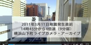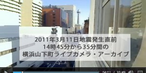 2011年3月11日震災時の横浜山下町ライブ映像アーカイブ [2011年3月11日14時45分から35分間の横浜山下町ライブカメラ・アーカイブ] 忘れ得ぬ2011年3月11日。多くの犠牲者の方々のご冥福を祈るとともに、私たちのできる範囲で復興に向けたお手伝いができればと思っています。横浜港・山下公園沿いにある神奈川県民ホール裏通り(水町通り)とマリンタワーのライブ映像アーカイブ。映像の2分30秒あたりから左の電線、中 … 投稿日: 2014年3月9日 カテゴリー:Adobe Media Server, Flash Media Server, SmartLiveサービス, WEBライブ配信, マルチデバイス・ライブ配信 タグ:311, 地震, 地震ライブカメラ, 東日本大震災, 横浜震災時, 震災アーカイブ, 震災時マリンタワー, 震災時ライブカメラ, 震災時山下町