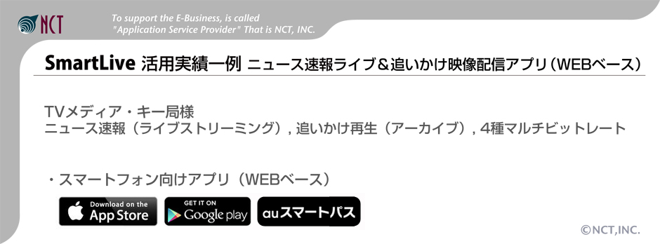 • NCTマルチプラットフォーム/SmartLiveエンジン・SmartエンコードFMS